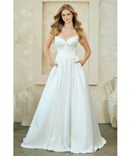 Nuevo Añadir deseos Añadir al carrito Vista rápida Añadir a comparar Vestido Blanco en A 445,00 $ Blanco Haz realidad tu sueño con este vestido de novia blanco estilo princesa, corset bordado strapless y falda amplia satinada con cola elegante. Ideal...