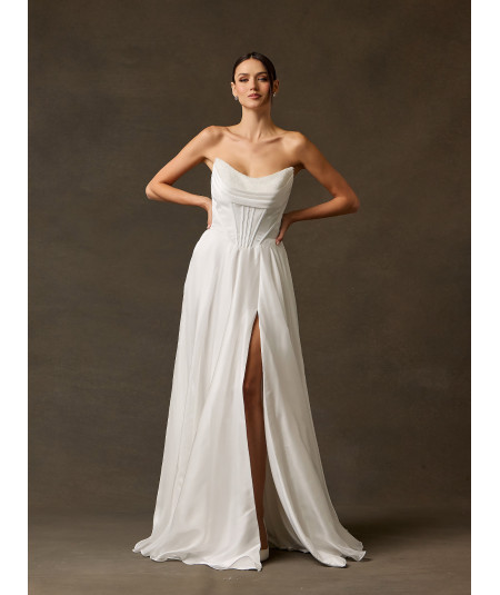 Nuevo Añadir deseos Añadir al carrito Vista rápida Añadir a comparar Vestido Blanco Perla 275,00 $ Perla Luce elegante y moderna con este vestido de novia blanco perla, diseño strapless con corset estructurado y abertura frontal en la pierna. Ideal...