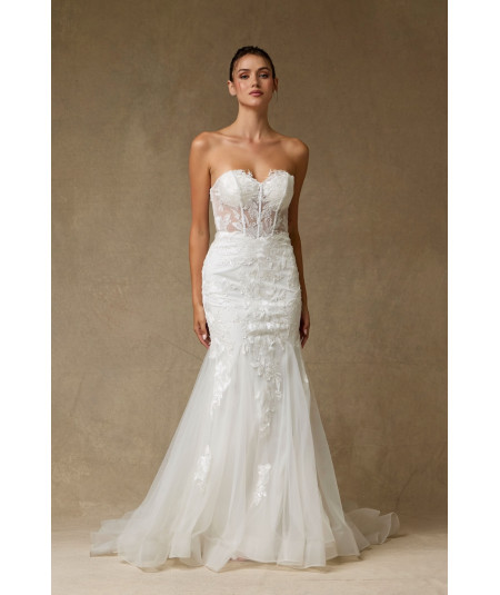 Nuevo Añadir deseos Añadir al carrito Vista rápida Añadir a comparar Vestido Corte Sirena Blanco 345,00 $ Blanco Deslumbra en tu gran día con este vestido de novia blanco corte sirena, diseño strapless con delicado encaje floral y falda de tul con cola...