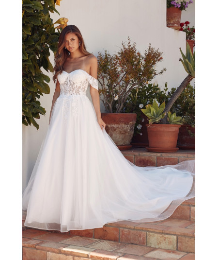 Nuevo Añadir deseos Añadir al carrito Vista rápida Añadir a comparar Vestido Blanco en A 298,00 $ Blanco Haz realidad tu sueño con este elegante vestido de novia blanco corte princesa, diseño strapless con corset de encaje bordado y mangas largas...