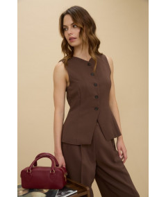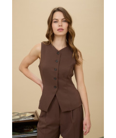 Chaleco sastre café sin mangas para mujer – Blu Pepper.