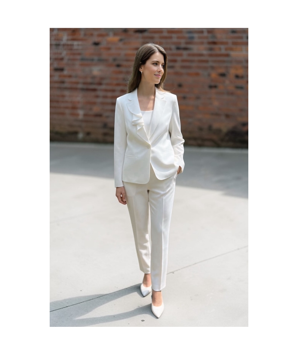 terno elegante mujer, traje blanco mujer elegante, conjunto elegante mujer blanco, blazer mujer elegante, pantalón formal mujer elegante, outfit ejecutivo mujer, traje mujer moderno elegante, ropa elegante mujer 2026, traje blanco boda civil mujer, conjunto sofisticado mujer