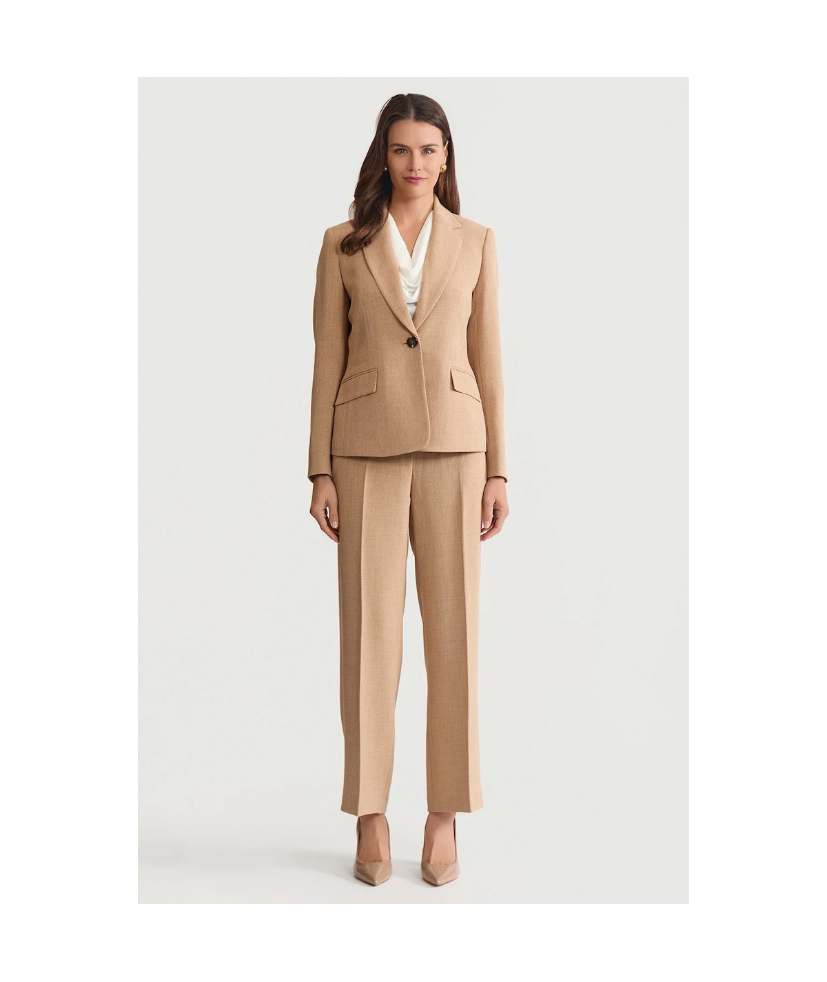 terno elegante mujer, traje habano mujer elegante, conjunto elegante mujer camel, blazer mujer elegante, pantalon formal mujer elegante, outfit ejecutivo mujer, traje mujer moderno elegante, ropa elegante mujer 2026, terno mujer boda civil, conjunto sofisticado mujer