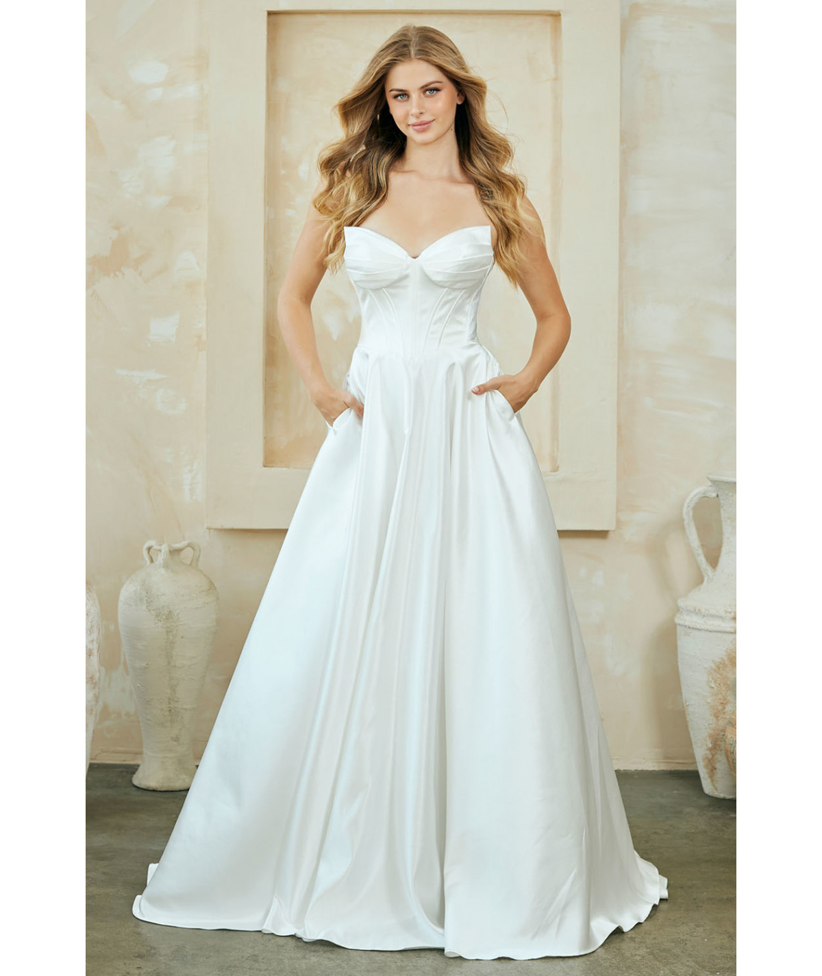 vestido de novia blanco, vestido novia corte A, vestido novia strapless, vestido novia corset, vestido boda civil mujer, vestido novia elegante, vestido novia clásico moderno, vestido novia falda amplia, vestido de graduación