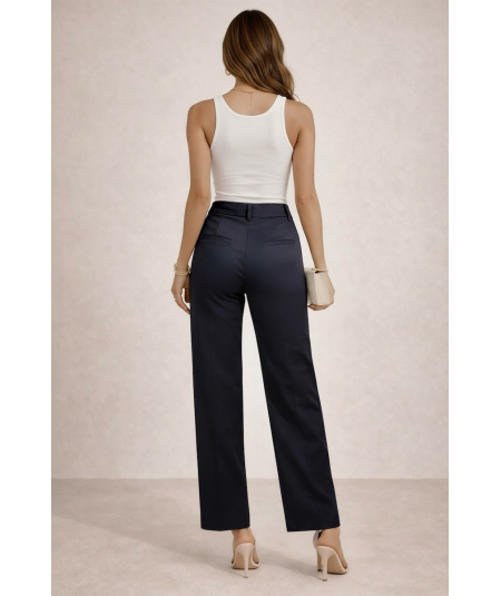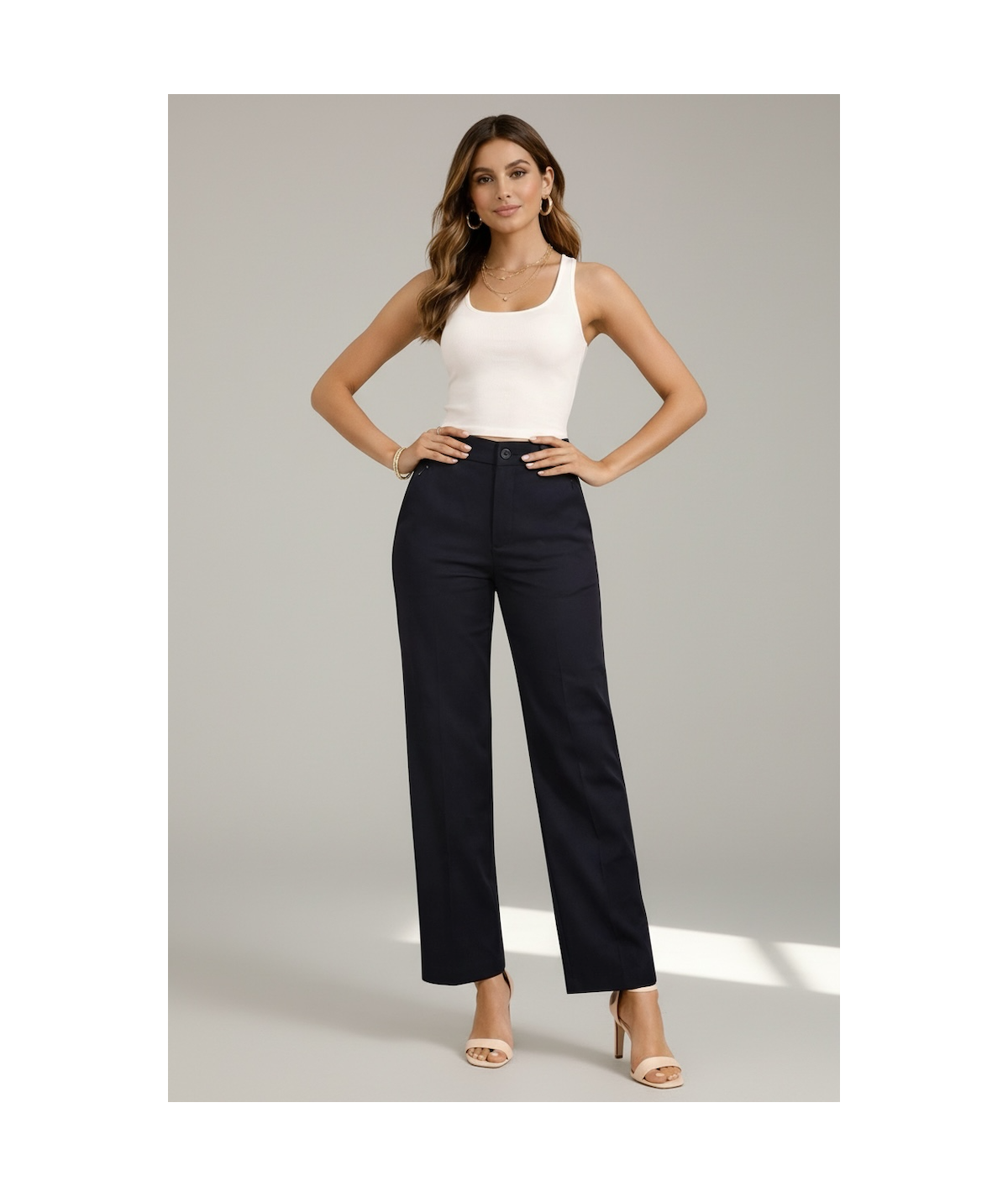 Pantalón de vestir negro para mujer con diseño elegante y corte recto que estiliza la figura. Confeccionado en un tejido estructurado de alta calidad que proporciona comodidad, ajuste perfecto y una caída sofisticada. Presenta cintura media con cierre frontal y botón, además de bolsillos funcionales que aportan practicidad sin perder estilo. Su diseño minimalista lo convierte en una prenda versátil ideal para looks formales, de oficina o combinaciones casuales elegantes. Puede combinarse fácilmente con blusas, tops o blazers para lograr un outfit moderno y refinado.