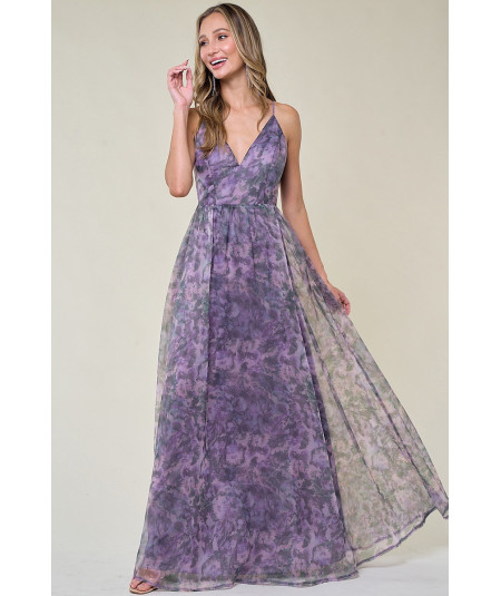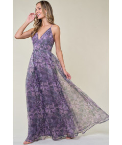 Diseño fresco y favorecedor con cuerpo de tirantes y escote en V que estiliza el torso. La gasa estampada en tonos lila aporta movimiento y un aire etéreo, mientras el corte A ofrece comodidad y silueta equilibrada. Opción precisa para invitadas que buscan elegancia ligera y color.