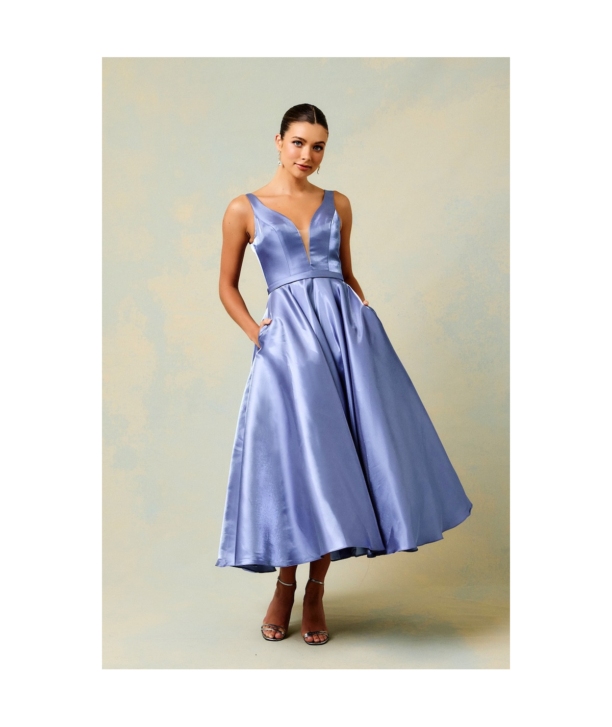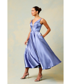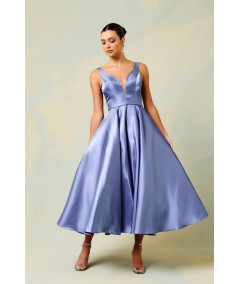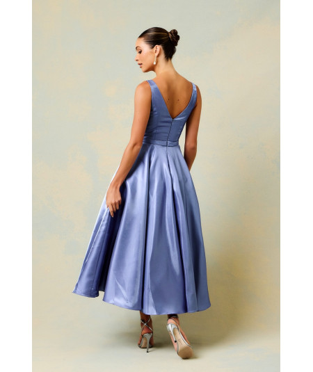 vestido elegante mujer, vestido azul celeste midi, vestido midi elegante mujer, vestido falda amplia midi, vestido escote en V elegante, vestido para boda invitada, vestido elegante día y noche, vestido sofisticado mujer, vestidos elegantes 2026, vestido satinado midi