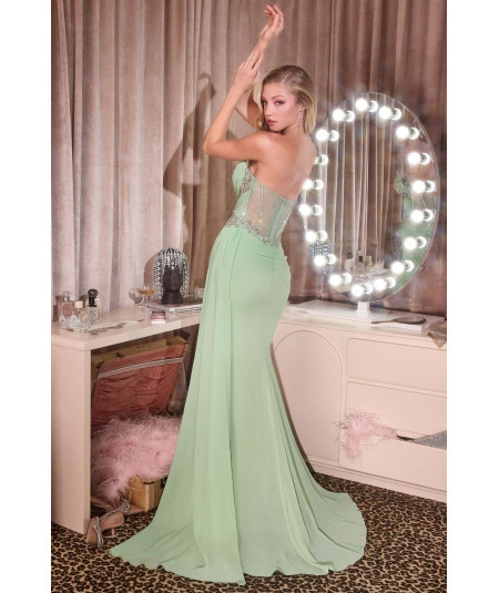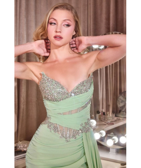 vestido elegante mujer, vestido verde sage elegante, vestido verde claro largo, vestido con corset mujer, vestido con pedrería elegante, vestido de gala mujer, vestido noche elegante, vestido con abertura lateral, vestido sofisticado mujer, vestidos elegantes 2026