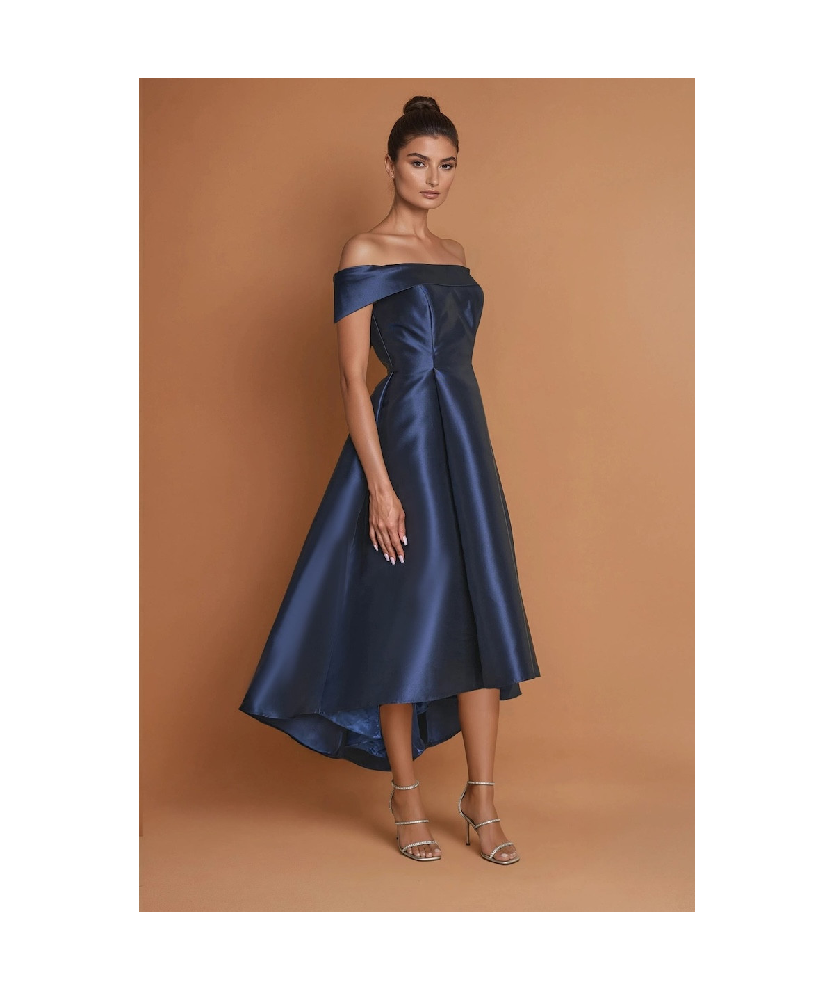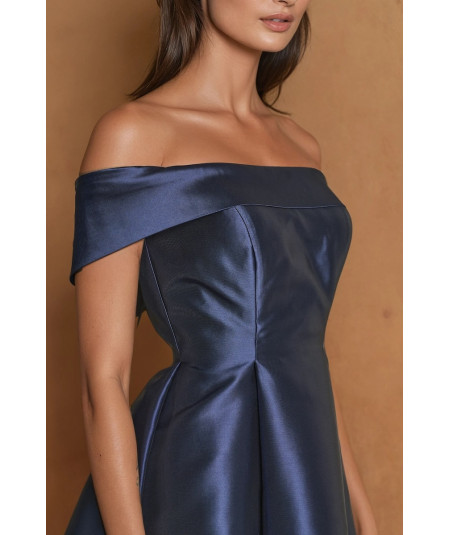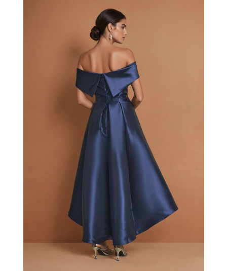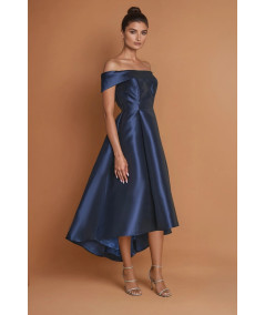 vestido elegante mujer, vestido azul marino midi elegante, vestido off shoulder mujer elegante, vestido midi satinado elegante, vestido cóctel mujer, vestido fiesta elegante, vestido de gala mujer, vestido sofisticado mujer, vestidos elegantes 2026, vestido formal midi