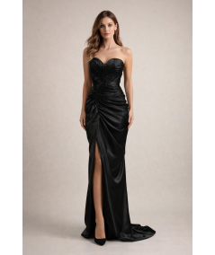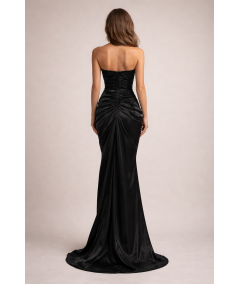 vestido elegante mujer, vestido negro elegante largo, vestido strapless elegante, vestido con drapeado elegante, vestido con abertura lateral, vestido de gala mujer, vestido noche elegante, vestido sofisticado mujer, vestidos elegantes 2026, vestido fiesta elegante