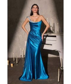 vestido azul petróleo elegante, vestido largo sirena, vestido un hombro fiesta, vestido de gala mujer, vestido brillante elegante, vestido graduación azul, vestido formal mujer
