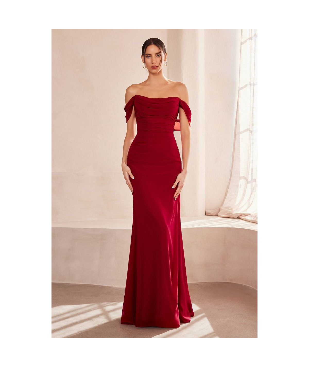 Luce sofisticada y femenina con este espectacular vestido largo color burgundy. Su diseño off shoulder resalta hombros y cuello con delicadeza, mientras el escote drapeado añade un toque romántico y moderno. La silueta ajustada realza la figura y la tela satinada brinda una caída fluida con acabado elegante. Perfecto para bodas, graduaciones, cenas formales y eventos nocturnos donde quieras destacar con estilo.