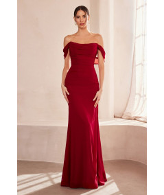 vestido burgundy elegante, vestido largo vino mujer, vestido off shoulder satinado, vestido fiesta burgundy, vestido graduación elegante, vestido formal mujer, vestido gala largo, vestido noche sofisticado